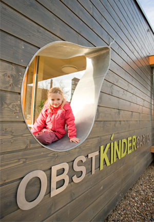 Im Juni 2010 wurde im Obstkindergarten eine weitere Gruppe eröffnet. Auf zusätzlichen 150 qm, die sich auf einen großzügigen Eingangsbereich, einen Gruppen- und Schlafraum sowie Sanitärbereich und Abstellraum verteilen, werden jetzt bis zu 15 Krippenkinder von drei Erzieherinnen und einer Jahrespraktikantin ganztägig betreut. Möglich wurde dies durch ein weiteres Engagement der Reederei NSB und den Abruf von Fördermitteln des Bundes zum Ausbau von Krippenplätzen.